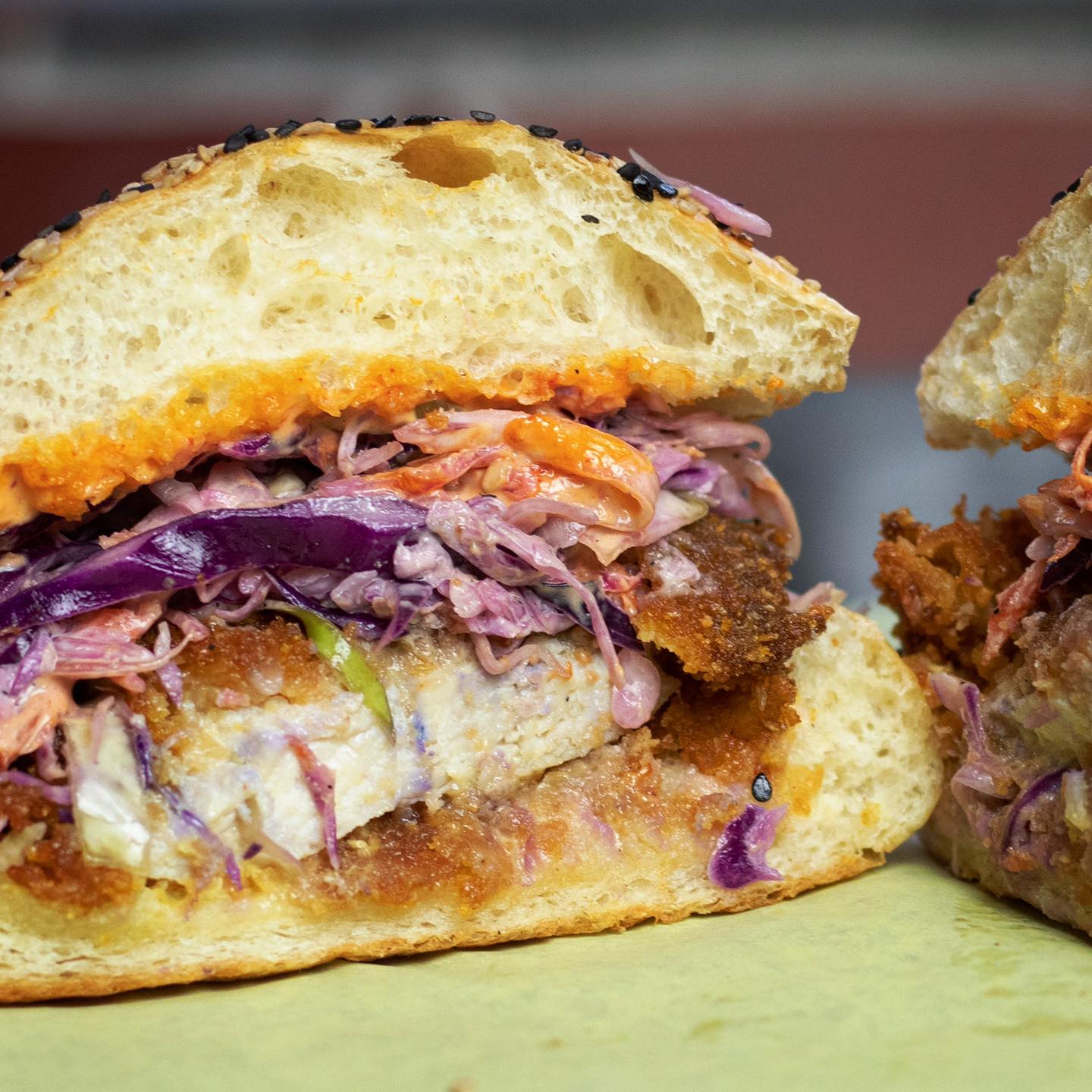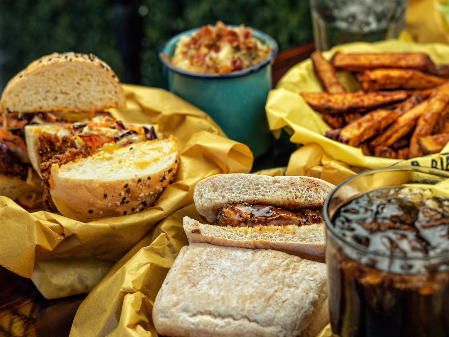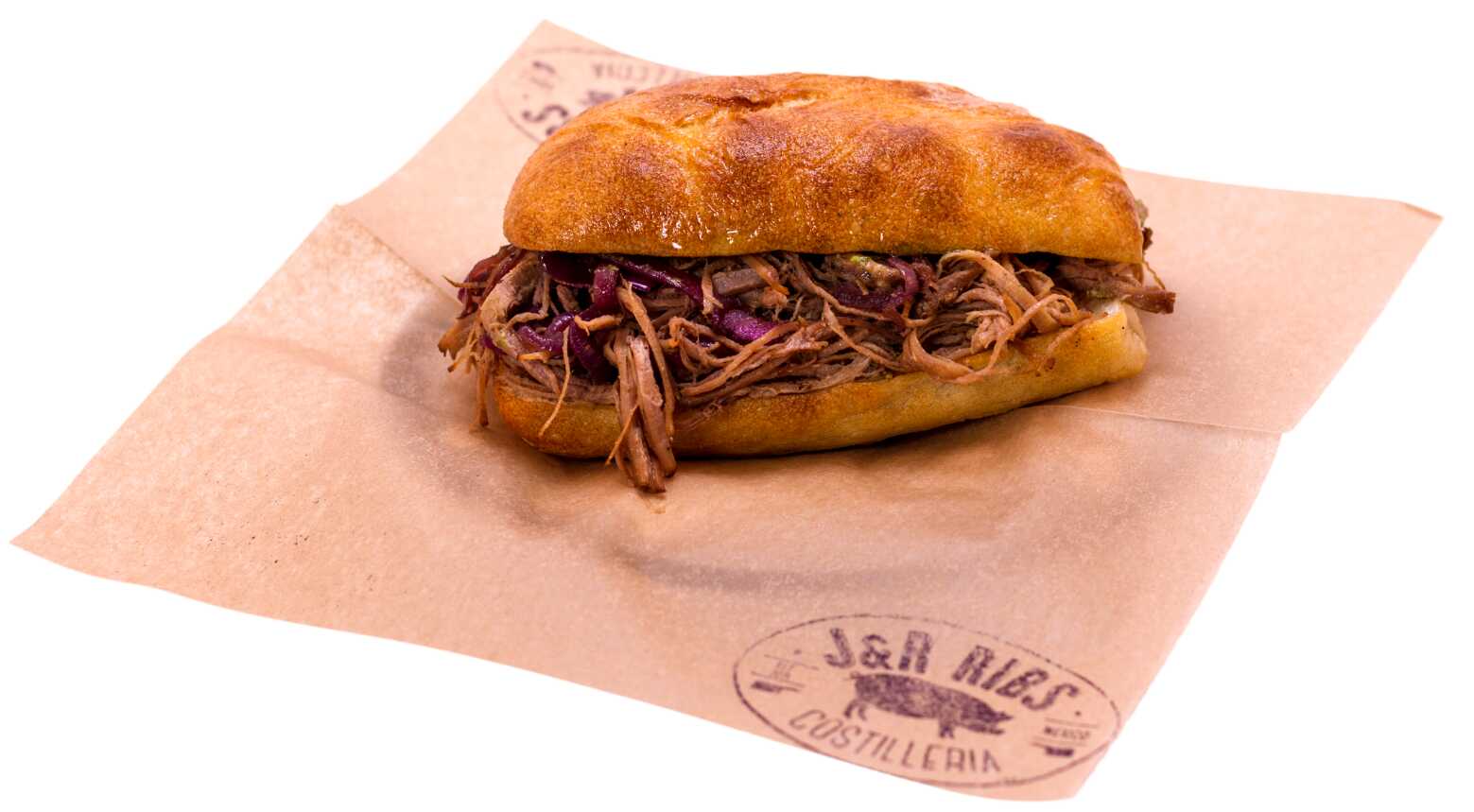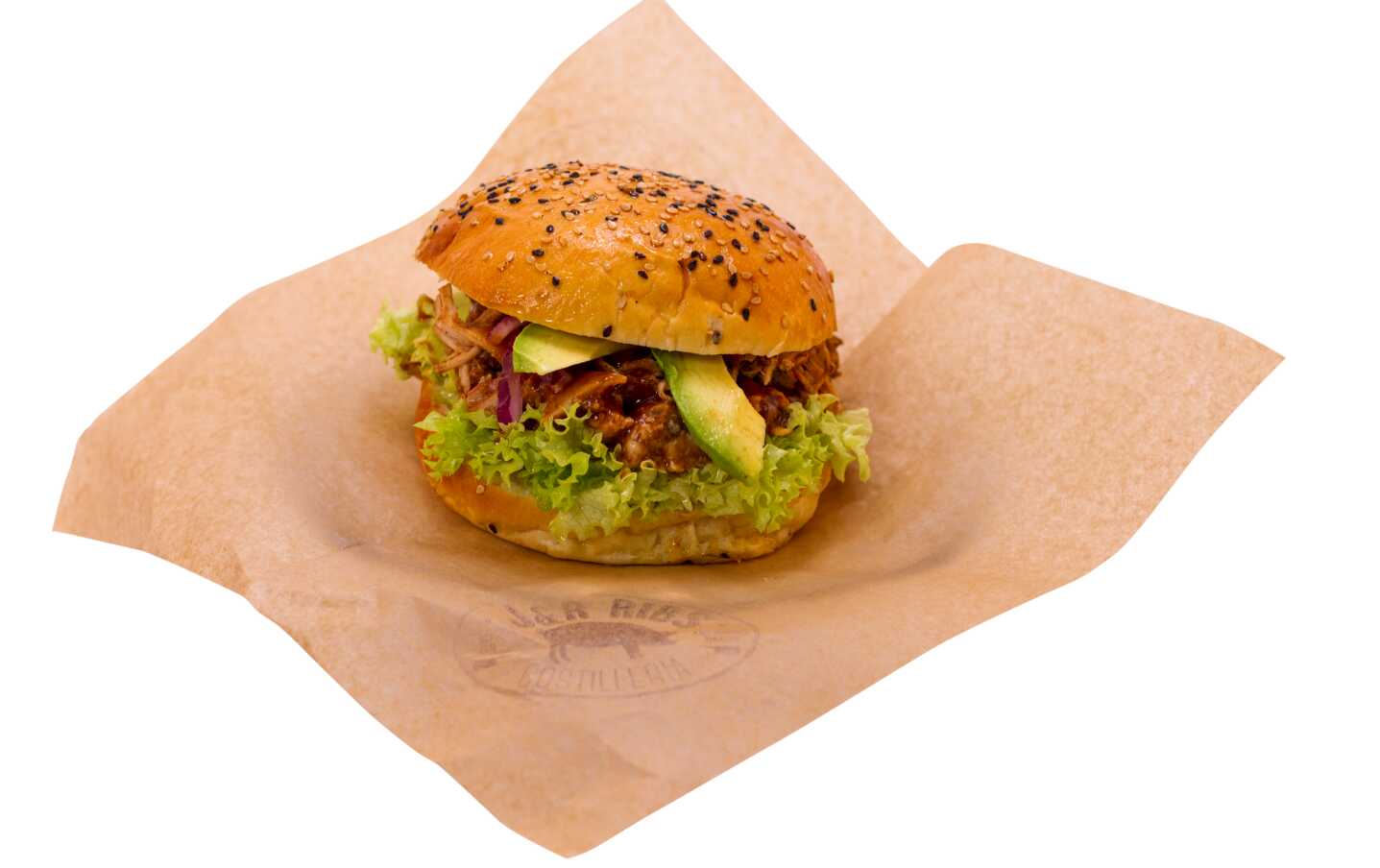 Carne jugosa deshebrada en un pan artesanal combinado con ensalada de col o con cebolla morada, aguacate y lechuga orgánica (200gr).