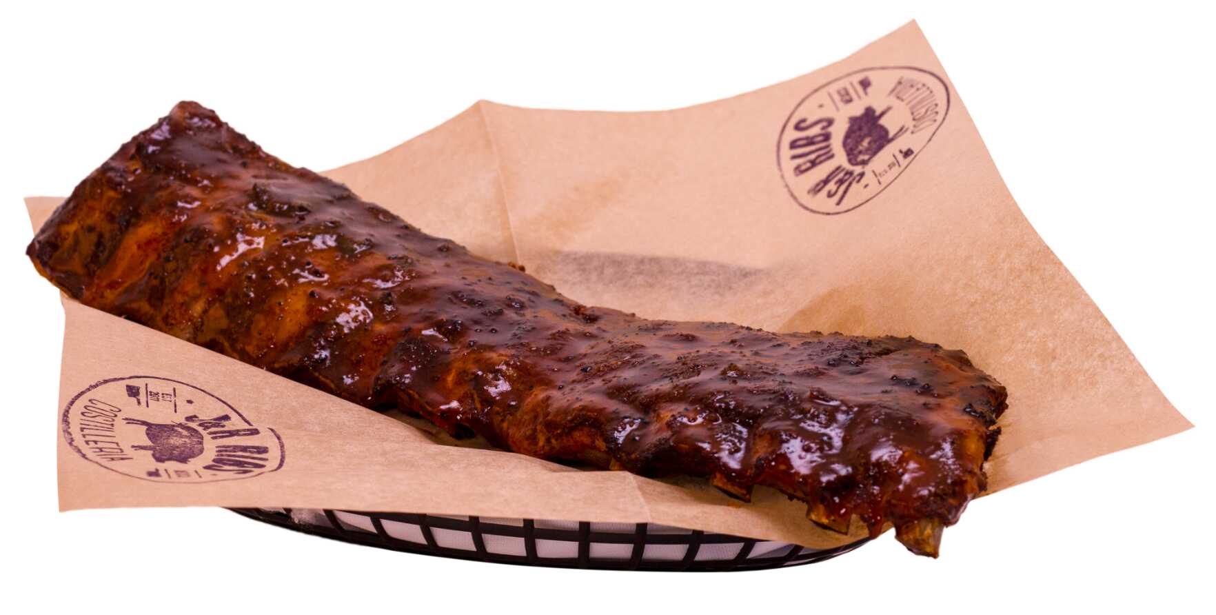 Costillas Baby-Back marinadas en nuestro polvo mágico durante 18 horas y cocinado a fuego lento hasta la perfección (300gr antes de cocinar).