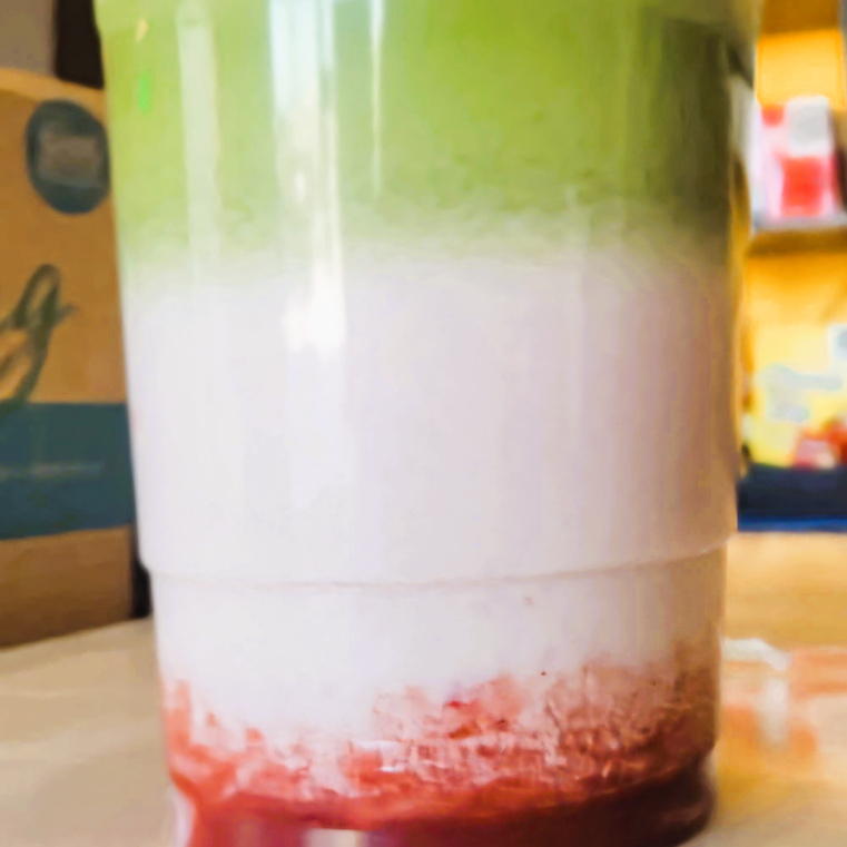 Latte de Matcha Organico y Fresa 100% Real Fermentada. Must Try!