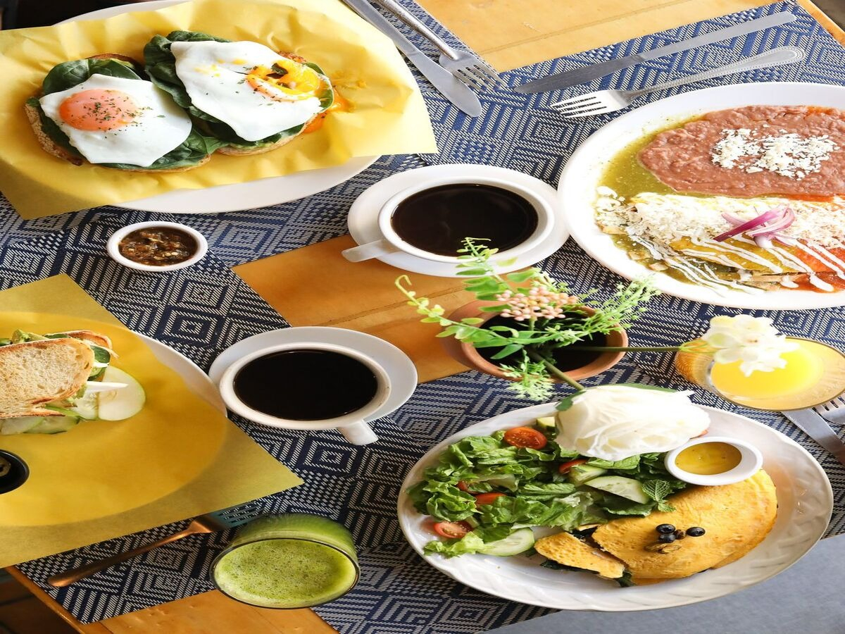 OMELETT RELLENO DE CHILAQUILES VERDES O ROJOS BAÑADO EN SALSA ROJA O VERDE ACOMPAÑADOS DE FRIJOLES