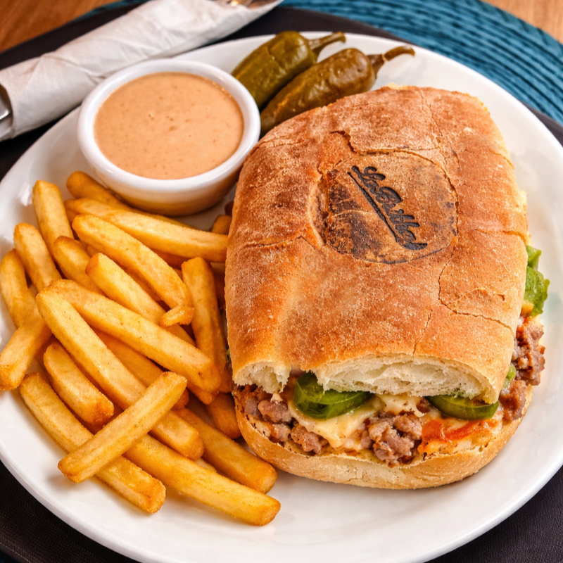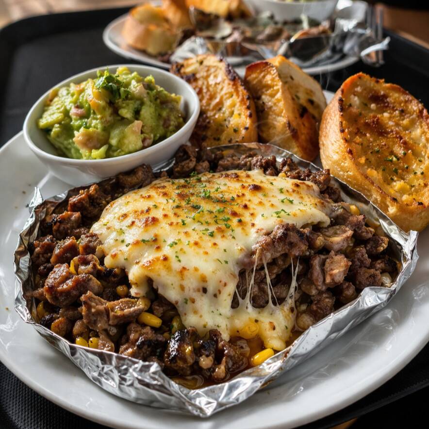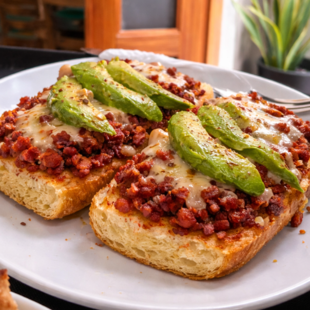 Pan dorado al horno con una base de frijoles refritos y queso gratinado, coronado con jugosa arrachera a la parrilla, suave y llena de sabor.