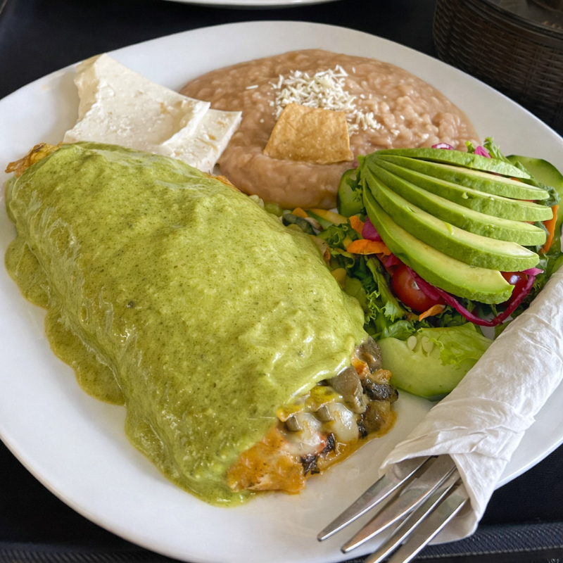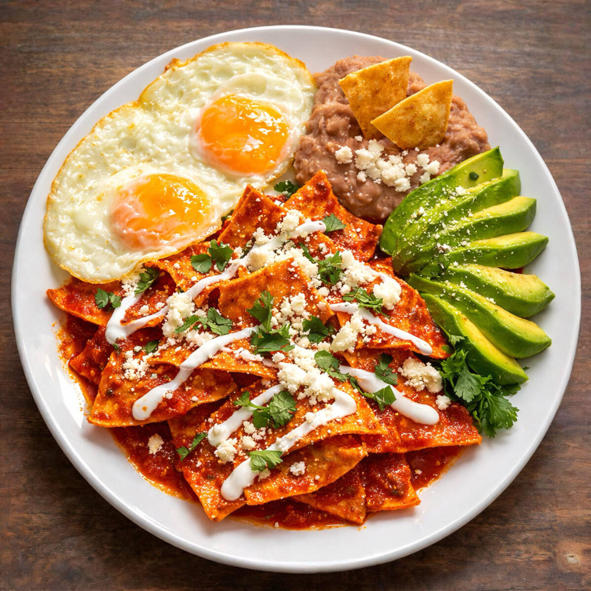 Totopos crujientes bañados en tu salsa favorita (roja o verde), preparados al momento para lograr el balance perfecto entre textura y sabor. Coronados con crema, queso fresco, cebolla y un toque de cilantro, acompañados de frijoles y la proteína de tu elección. Un clásico mexicano lleno de sabor, ideal para empezar el día con todo.