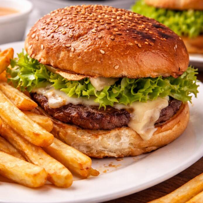 Disfruta nuestra irresistible hamburguesa preparada con la proteína que prefieras: jugosa carne de res, pechuga de pollo a la plancha o deliciosos camarones sazonados. Acompañada con crujiente tocino, queso derretido, lechuga fresca y aderezo especial, todo dentro de un pan dorado y suave. Servida con papas fritas doradas al punto, perfectas para completar esta experiencia llena de sabor.