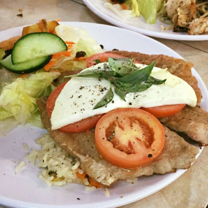 Incluye sopa del dia, dos guarniciones, te helado y postre del dia