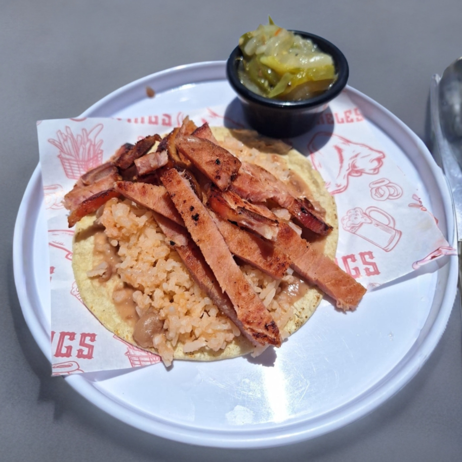 Taco Grande de Chuleta Ahumada con Arroz