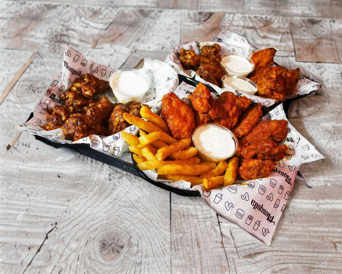 24 Alitas + porción de papas + 3 aderezos ranch
