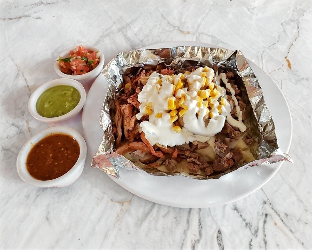 Cliente puede elegir papa el pastor, mixta y Arrachera.