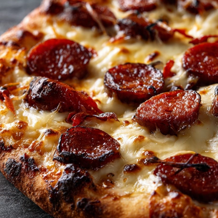 Salsa de jitomate, queso mozzarella y abundante pepperoni dorado. El clásico eterno, con la fuerza tribal en cada mordida.