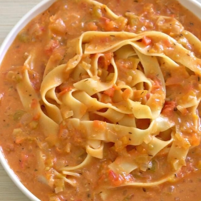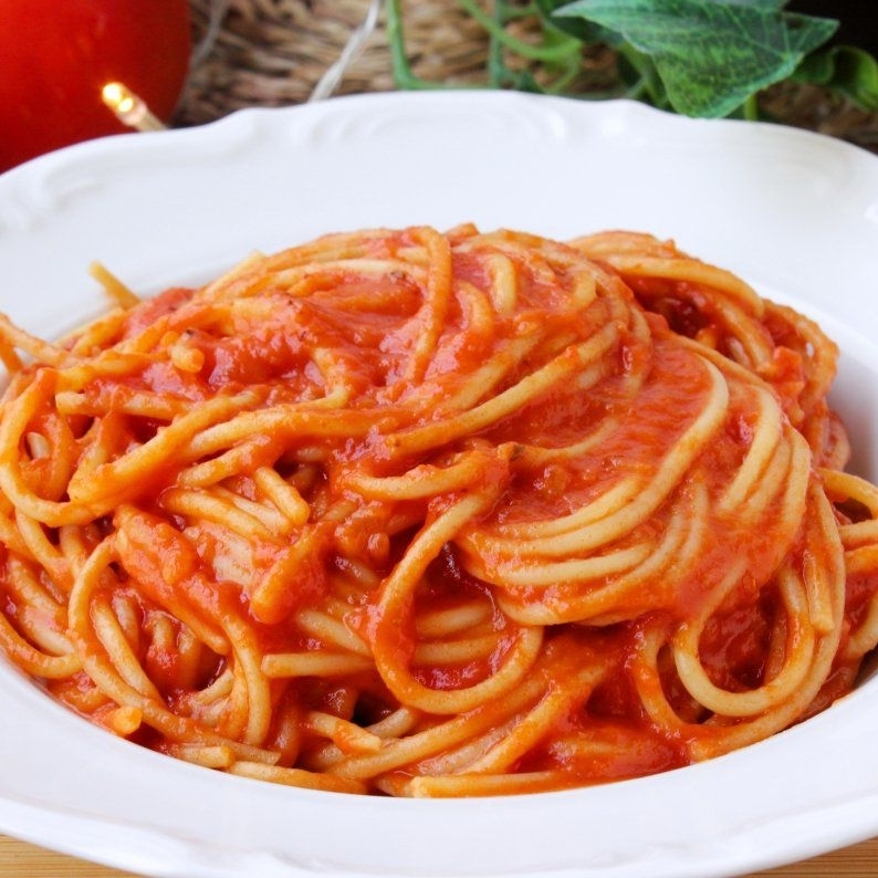 Salsa de jitomate fresco con especias y albahaca. Ligera, fresca y con la energía del sol