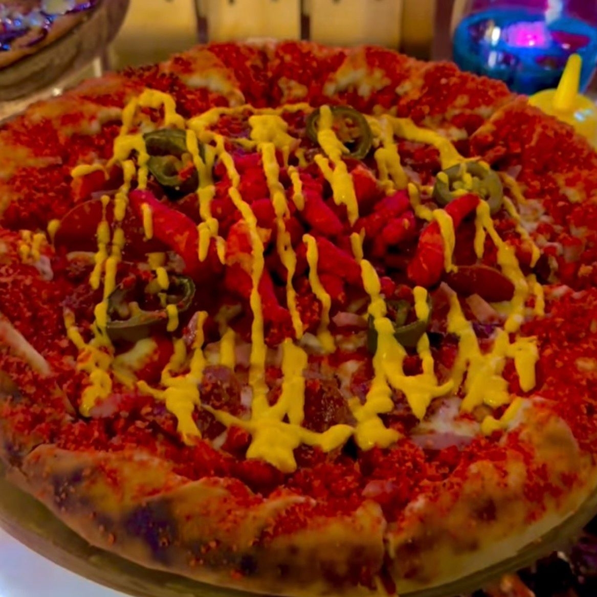 Pepperoni, jamón, tocino, jalapeño y cheetos Flamin'Hot. Con orilla rellena y topping crujiente que enciende el sabor. ¡No te quedes con el antojo!