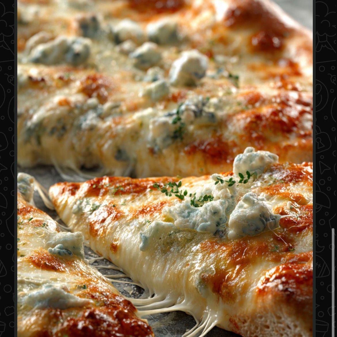 Salsa de jitomate, queso mozzarella, ricotta, queso azul y parmesano. Cuatro fuegos distintos que se funden en una sola pasión.