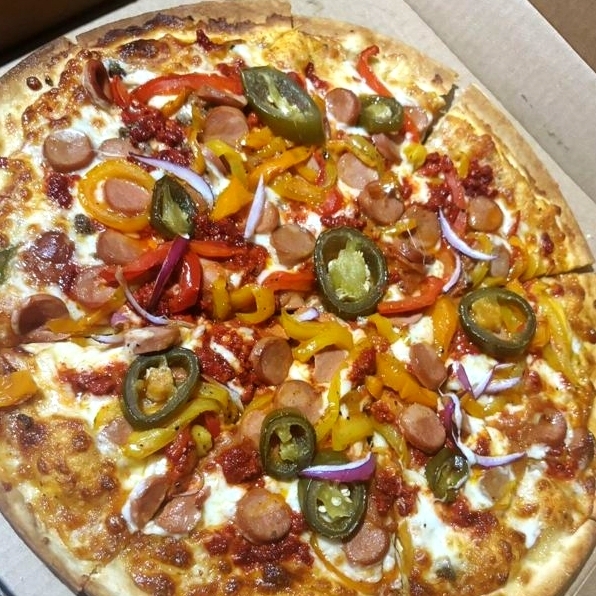 Salsa de jitomate, queso mozzarella y rodajas de salchicha estilo parrillero. Un flechazo de sabor directo al corazón de la tribu.