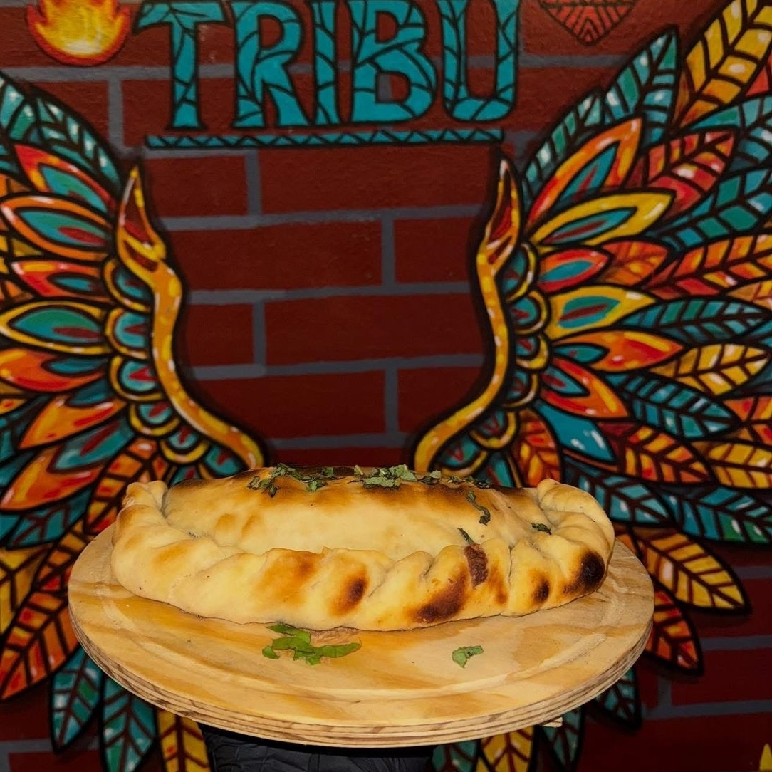 Una joya tribal rellena de mariscos (pulpo, callo, camarones) con queso mozzarella fundido. Del océano a la leña, el tributo marino de los guerreros.