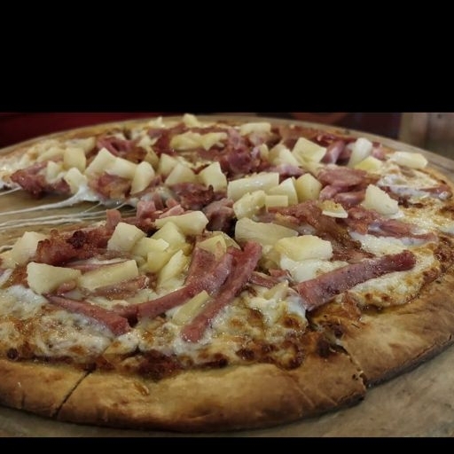 Salsa de jitomate, queso mozzarella, jamón y piña. La mezcla tropical que nunca falla, ahora con fuego de leña.