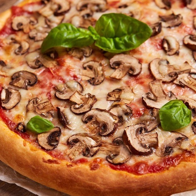 Salsa de jitomate, queso mozzarella y champiñones frescos. Sencilla, fresca y mágica: del bosque directo al horno tribal.
