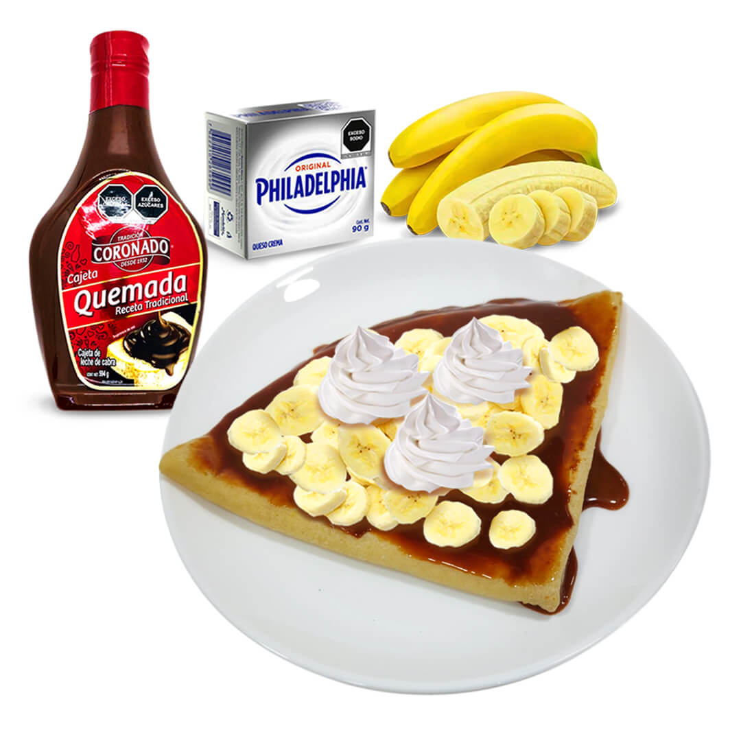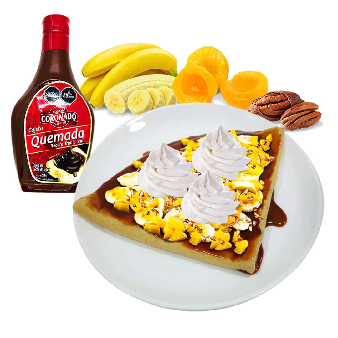 Cajeta, Plátano, Durazno, Nuez Y Crema Batida