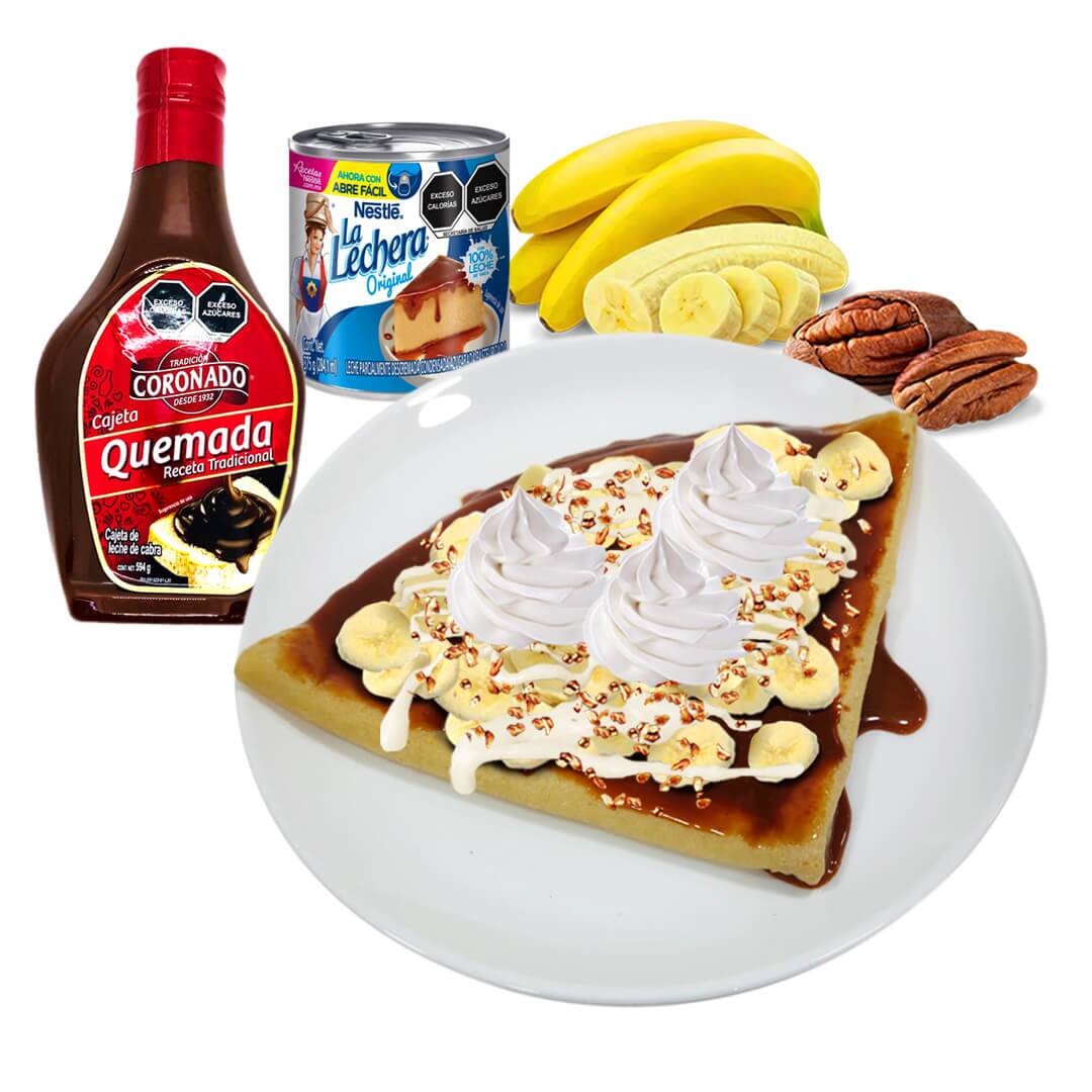 Lechera, Cajeta, Plátano, Nuez Y Crema Batida