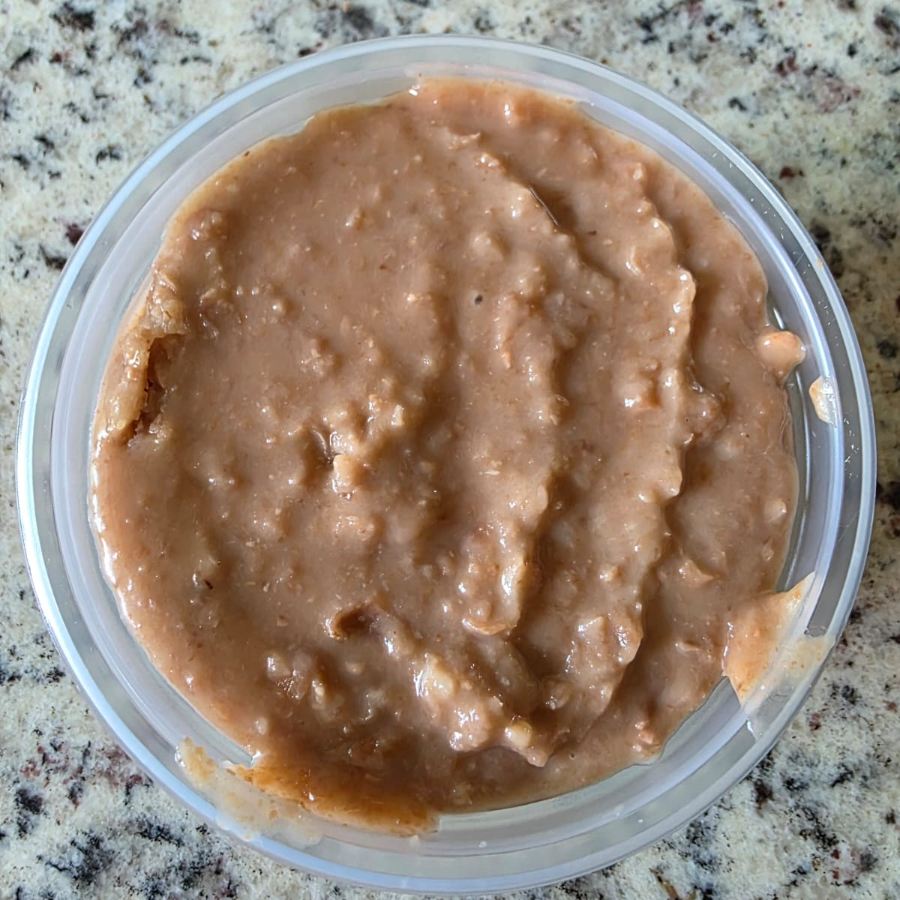 Medio litro de frijol natural refrito. Nuestros guisos por lo regular están a una temperatura ambiente, indícanos en los comentarios si deseas que se te envié CALIENTE EL GUISO O GUARNICION.