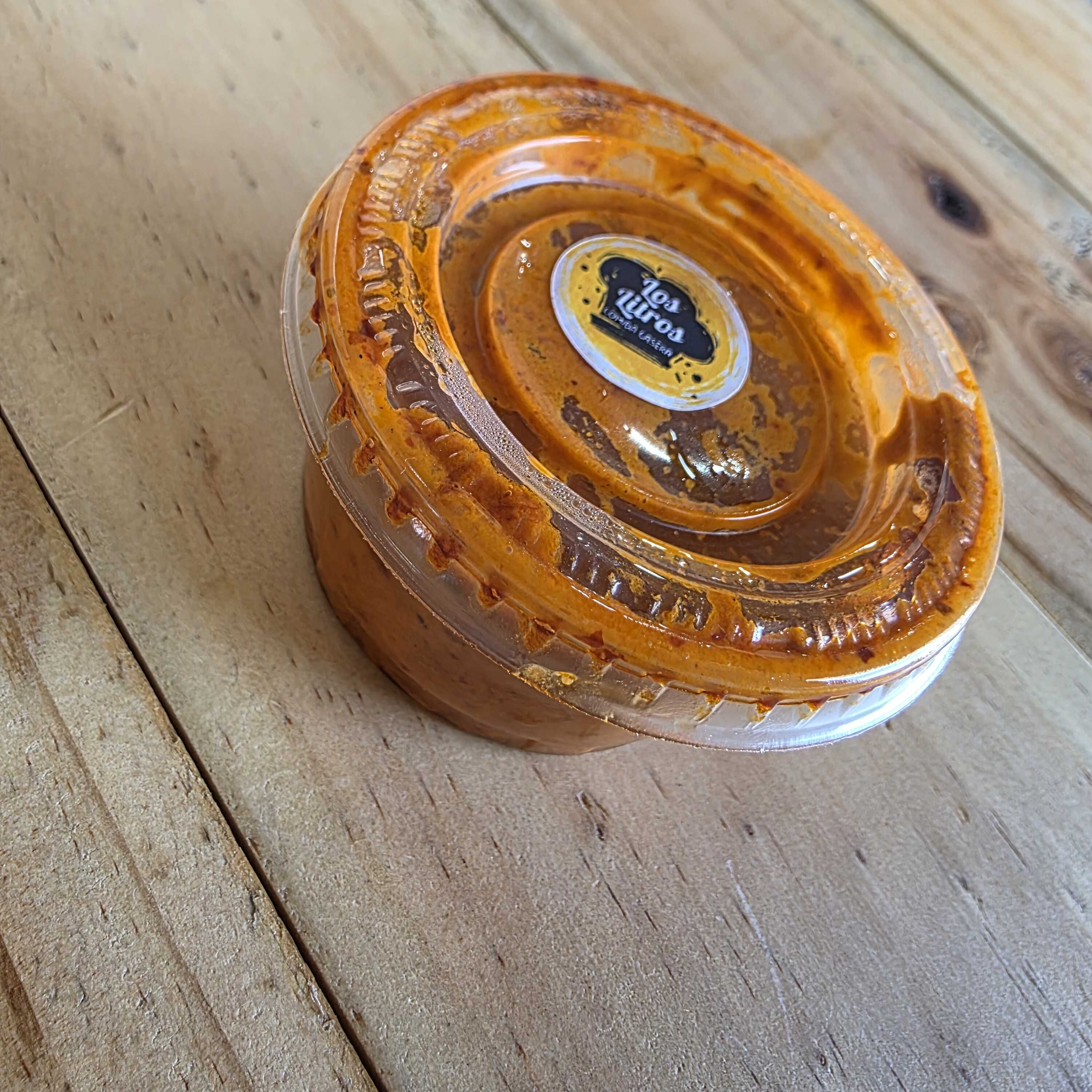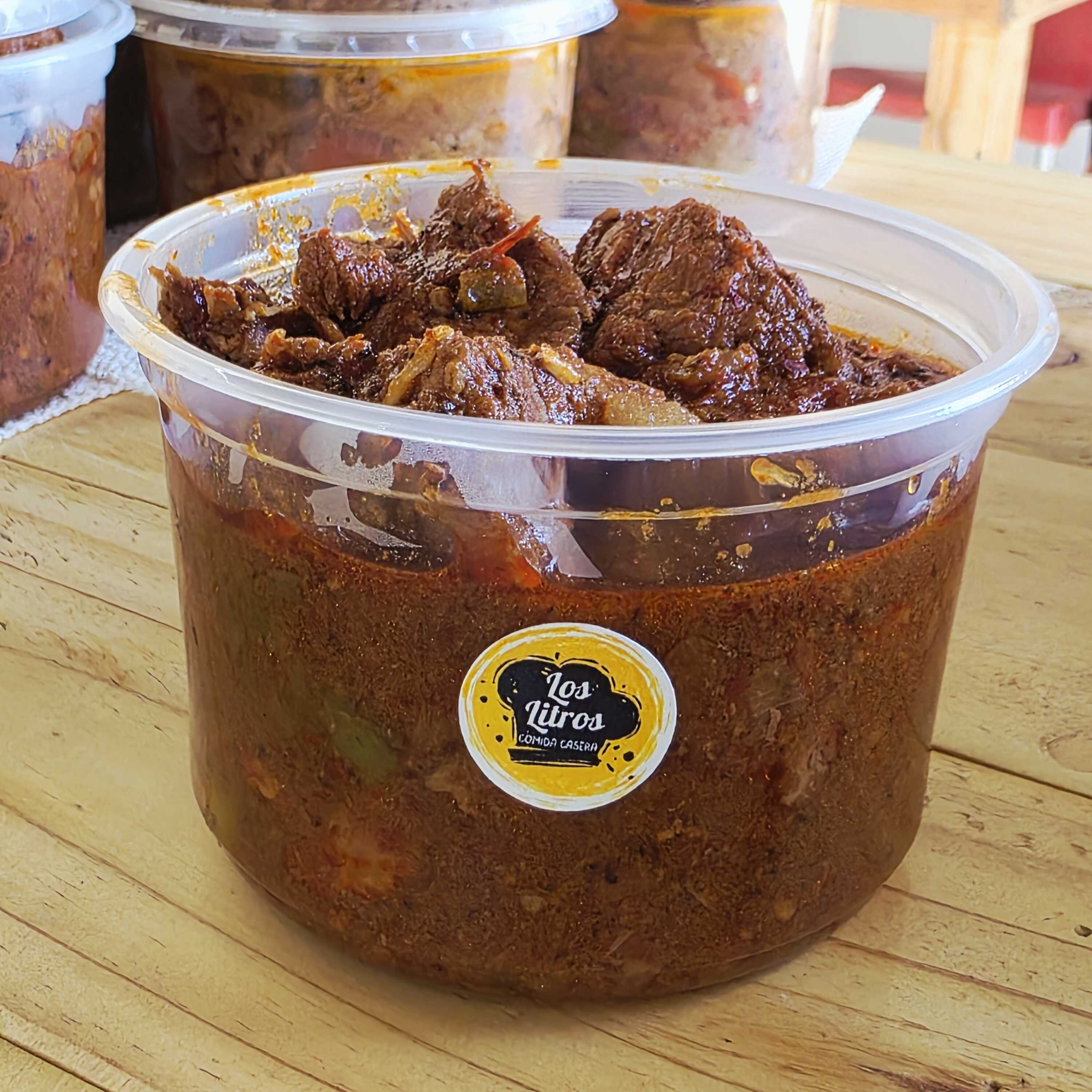 Costillas de res en chile colorado con Garbanzo en medio litro.