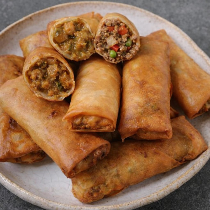 Deliciosos rollos tipo primavera Relleno de guiso al gusto, describe en los comentarios tu guiso de eleccion. Chicharron en salsa verde, cochinita, picadillo de res, cerdo con papas en chile colorado, queso con jamón y champiñón.