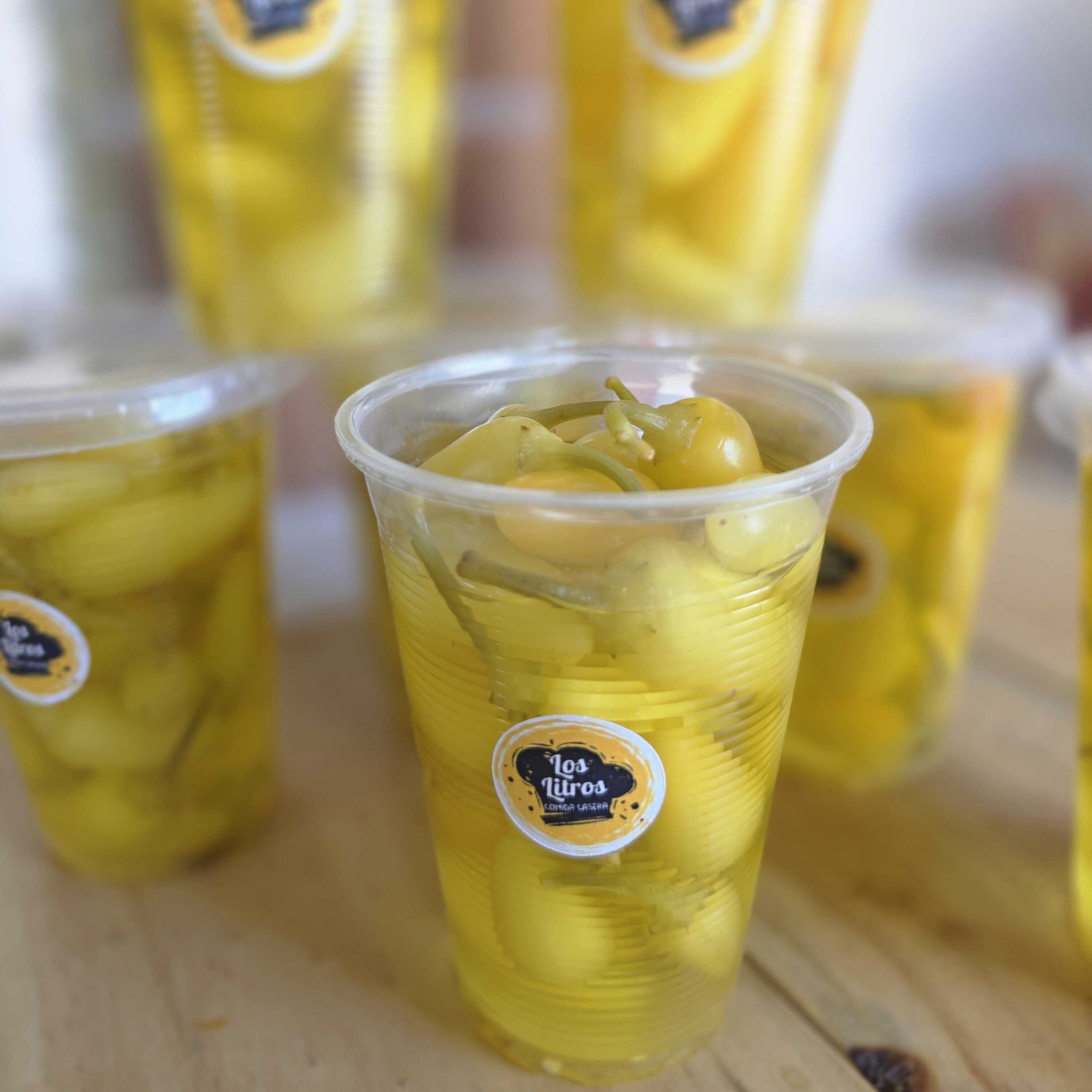 Vaso de 8 Oz con chilitos verdes en vinagre.