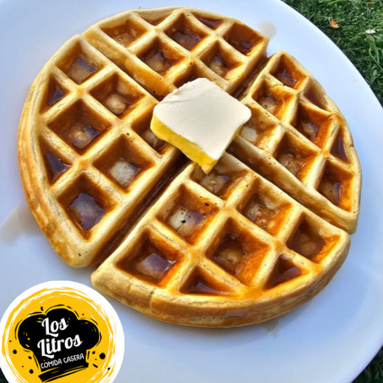 Waffle con mantequilla y miel Maple.