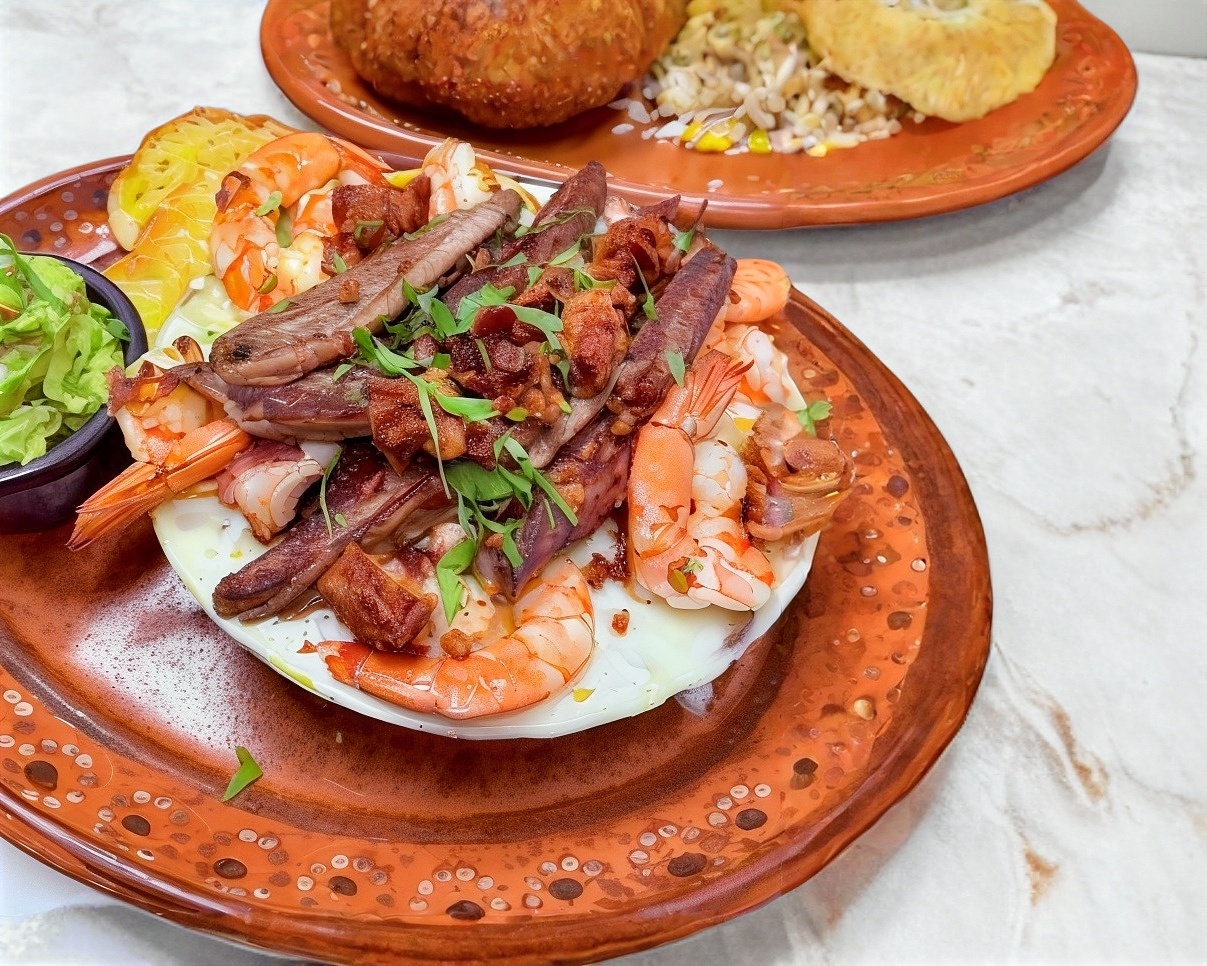 RELLENA CON PULPO, CAMARÓN Y ARRACHERA