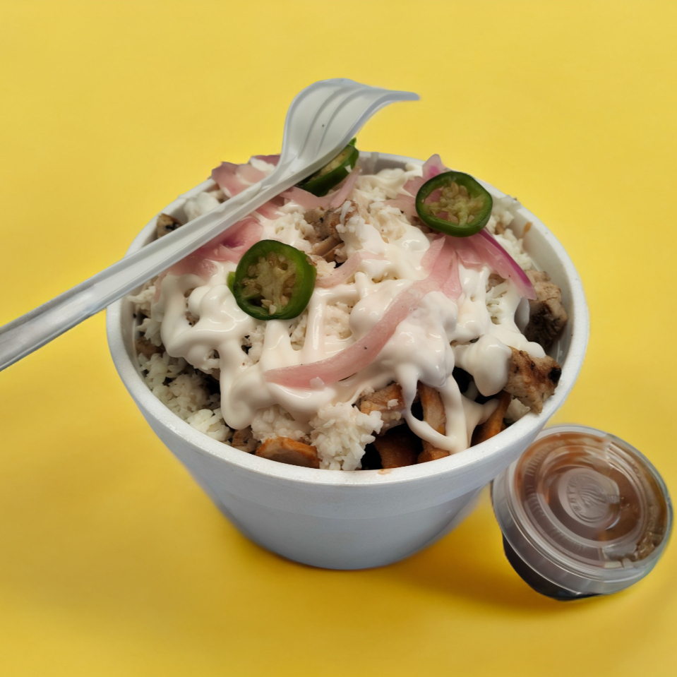 CARNE DE RES, QUESO FUNDIDO, TOCINO, SALSA BBQ, CEBOLLA ASADA, ENSALADA, ADEREZO