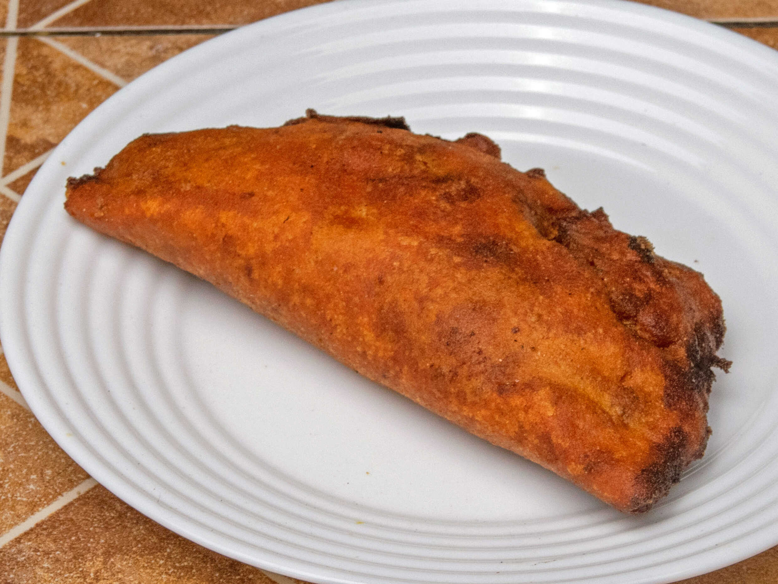Empanada de Maseca rellena de camarón con queso.