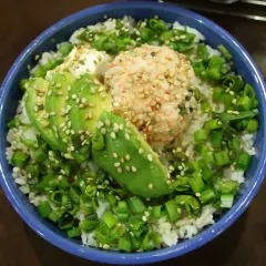 ARROZ BLANCO Aguacate, tampico, queso crema, cebollín, ajonjolí y salsa de anguila.