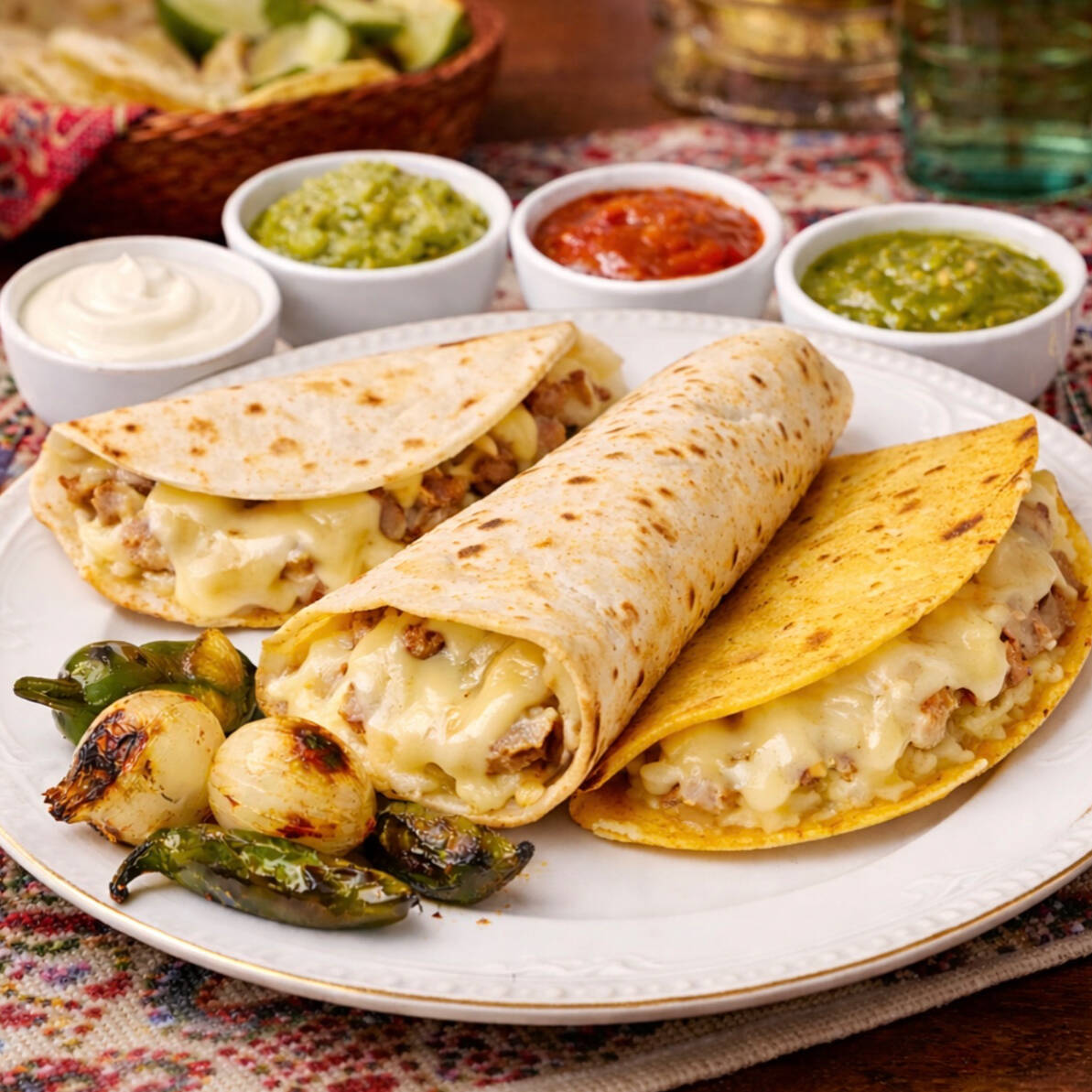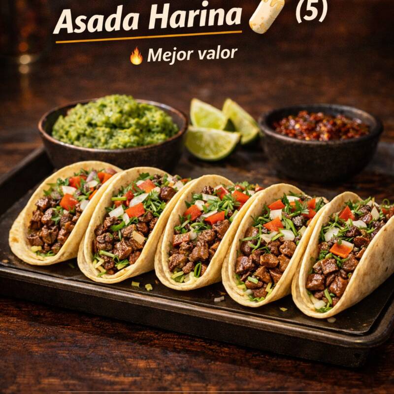 5 tacos de harina bien llenadores, con todo y guacamole real. Esto ya es nivel serio.