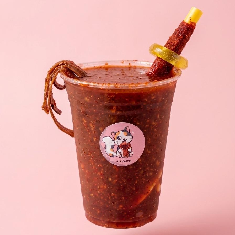 Clamato preparado con salsas y gomitas