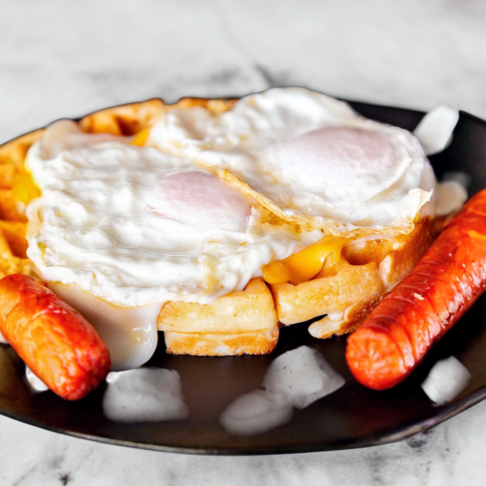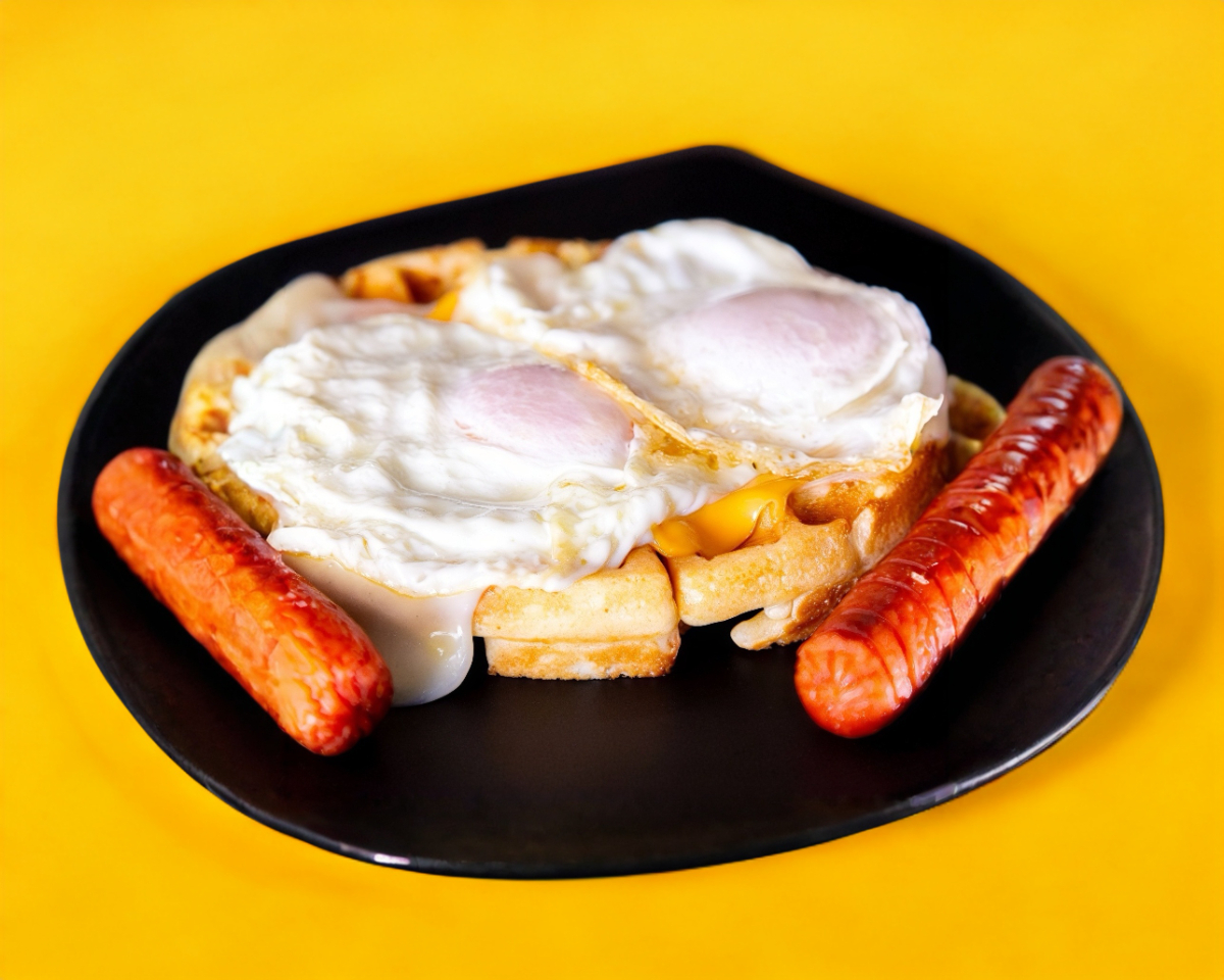 Waffle con Salchicha, Queso y Huevo