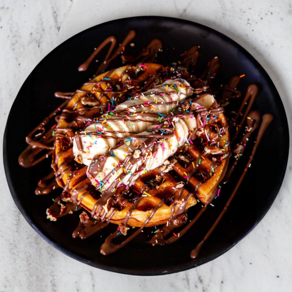 Waffle con Nutella, Platano y Nuez