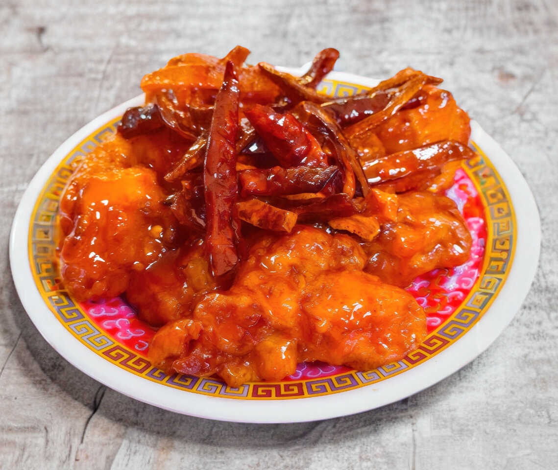 Trozos de pollo crujiente bañados en una salsa agridulce y Picante. Incluye Porción de Arroz Blanco. Incluye 1 Salsa Siracha y 1 Salsa Soya.