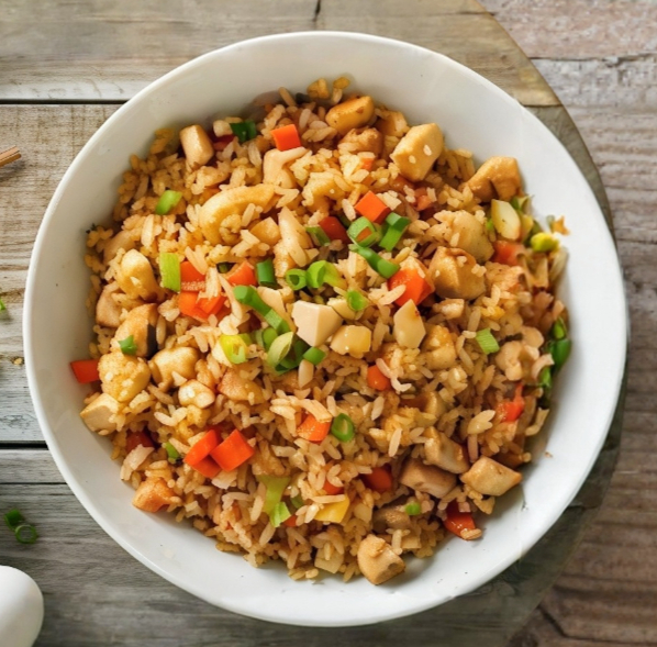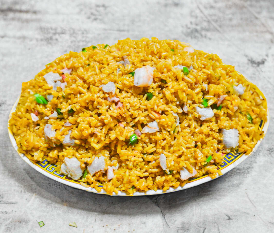 Arroz Frito con Pollo, Res, Puerco y Camarón