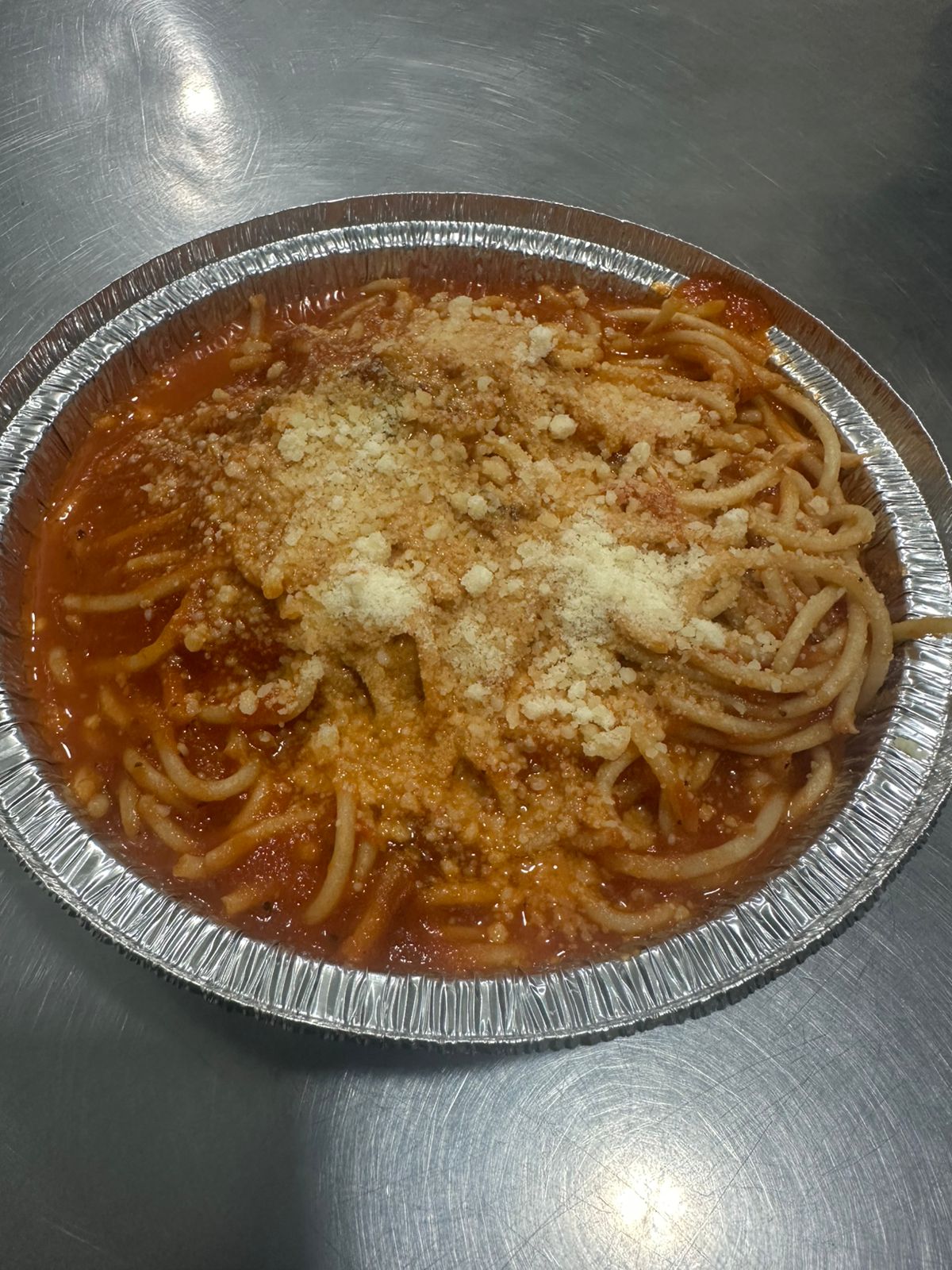 Pasta espagueti con salsa, ideal como acompañamiento.