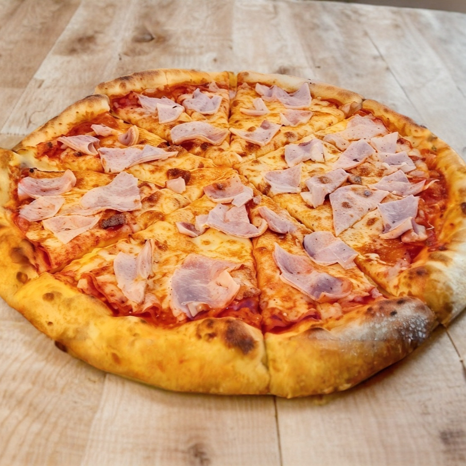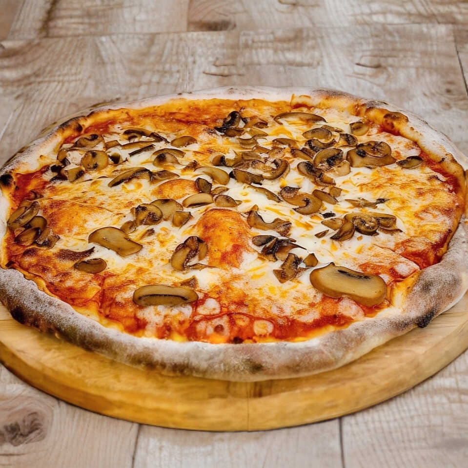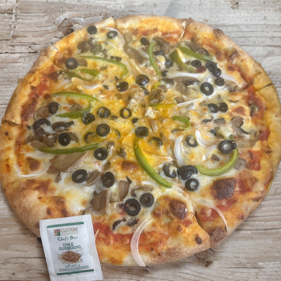 Pizza vegetariana con una mezcla de vegetales frescos.