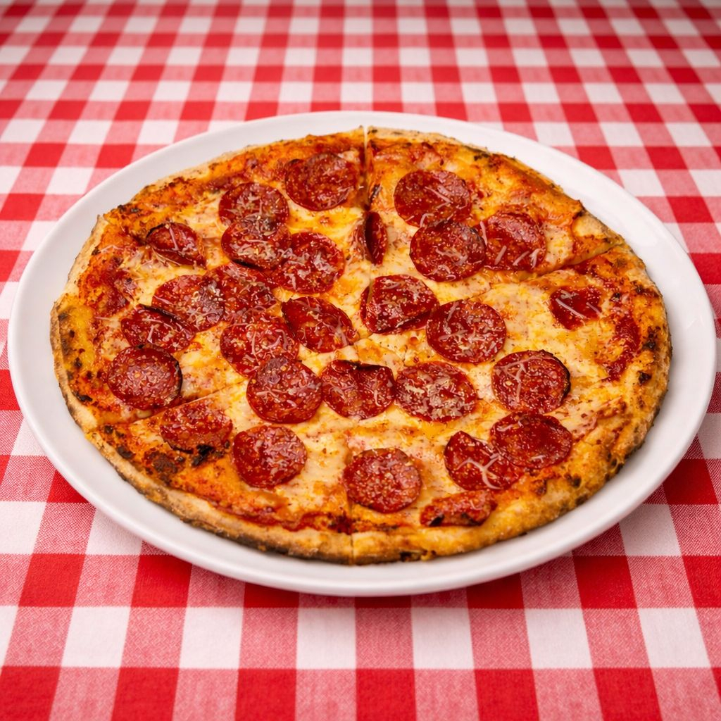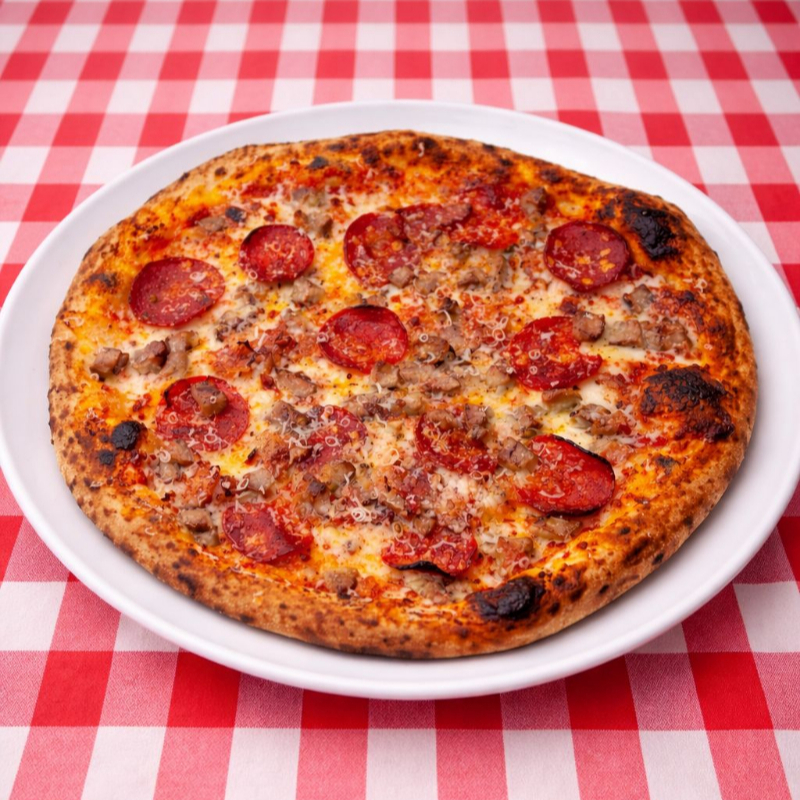 PEPERONI (PEPERONI AGOTADO), SALAMI, PIMIENTOS, CEBOLLA, GORGONZOLA Y QUESO MOZARELLA