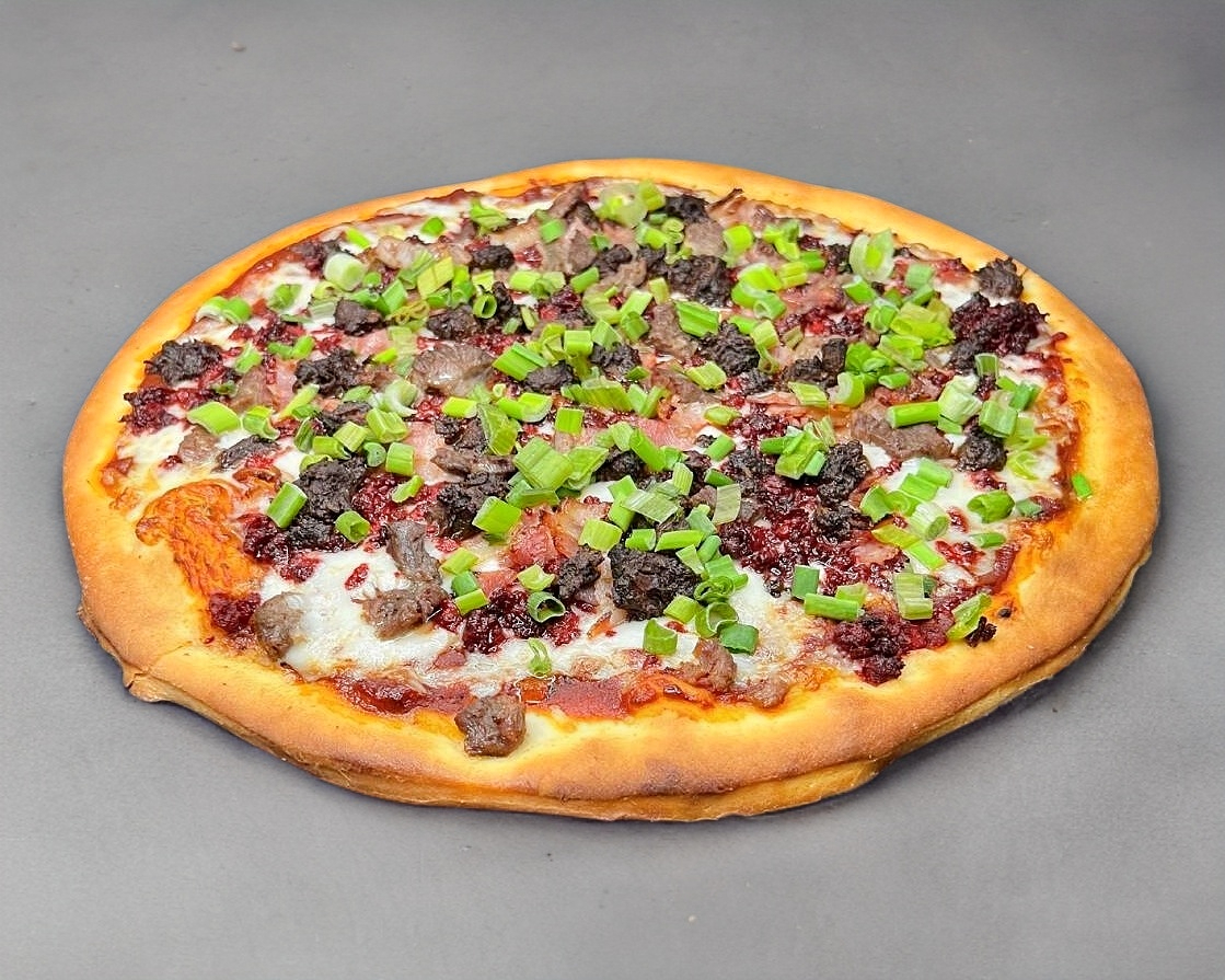 Carne asada, chorizo, tocino, chilorio, cebollín.