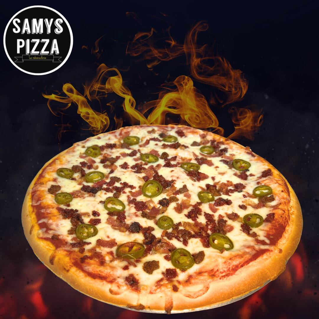 ngredientes disponibles: champiñones, pepperoni, jamón, salchicha, chilorio, tocino, chorizo, frijol, pimiento morrón, piña, cebollín, mango, aceituna negra, aceituna verde, tomate, cebolla, BBQ, parmesano.