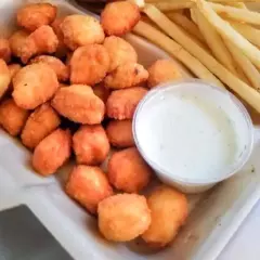Nuggets, palomitas o tenders de pollo y papas fritas