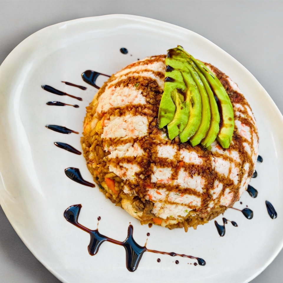 Tazon de arroz frito, con calabaza, zanahoria, res, pollo, camarón,