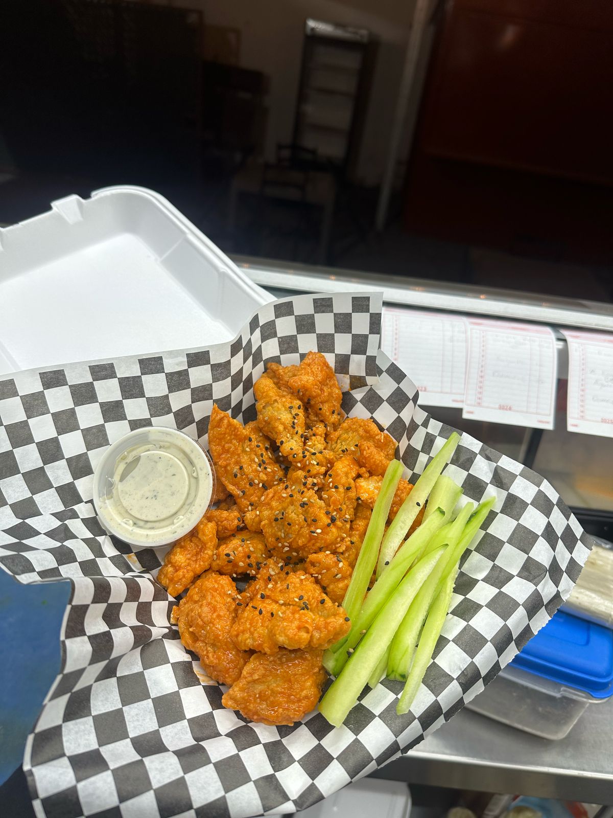 1/2 de boneless. Salsa Bufalo. Acompañado de 2 aderezos chipotle