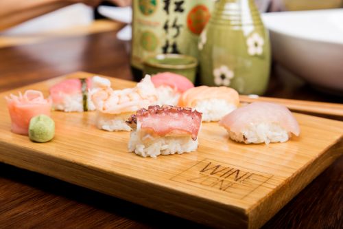 Combinación de nigiris con proteína a su elección. (atún, camarón, pulpo, jurel, salmón, masago, tampico).