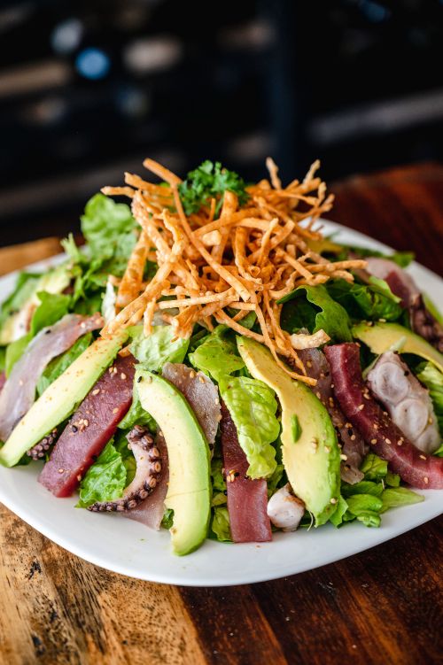 Lechuga fresca, aguacate, atún, jurel y pulpo con un toque de aceite de oliva.