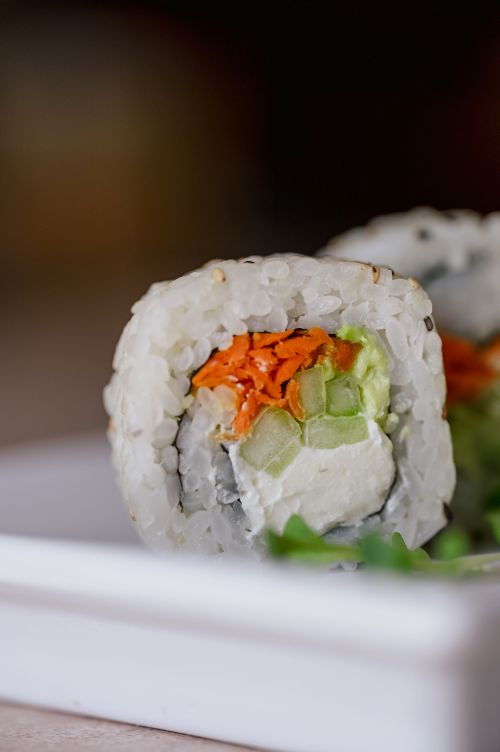 Queso crema, aguacate, pepino y zanahoria. Ajonjolí.