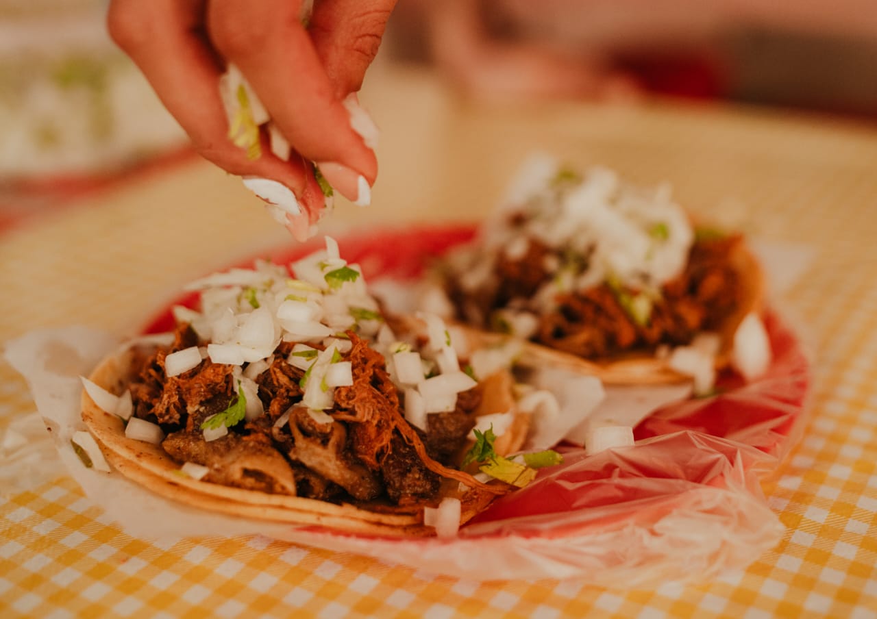 2 tacos de birria, uno dorado y otro blandito más Concome chico