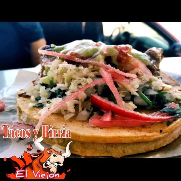 Taco de birria 1, taco dorado de birria 1 y consomé chico 1.