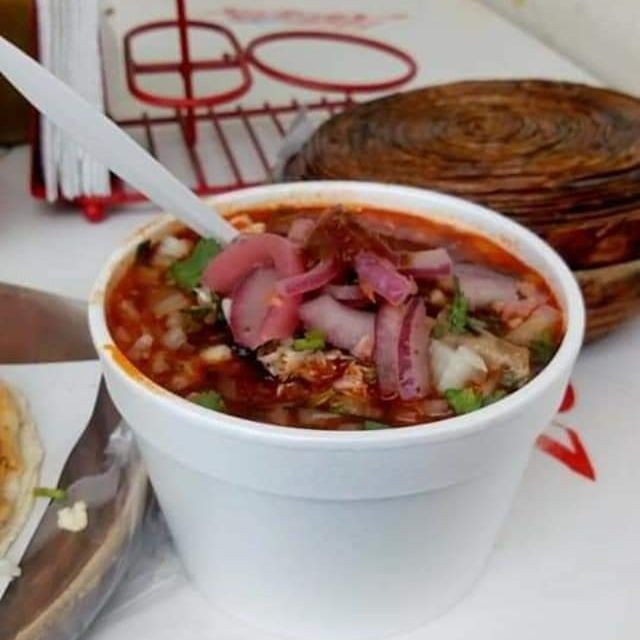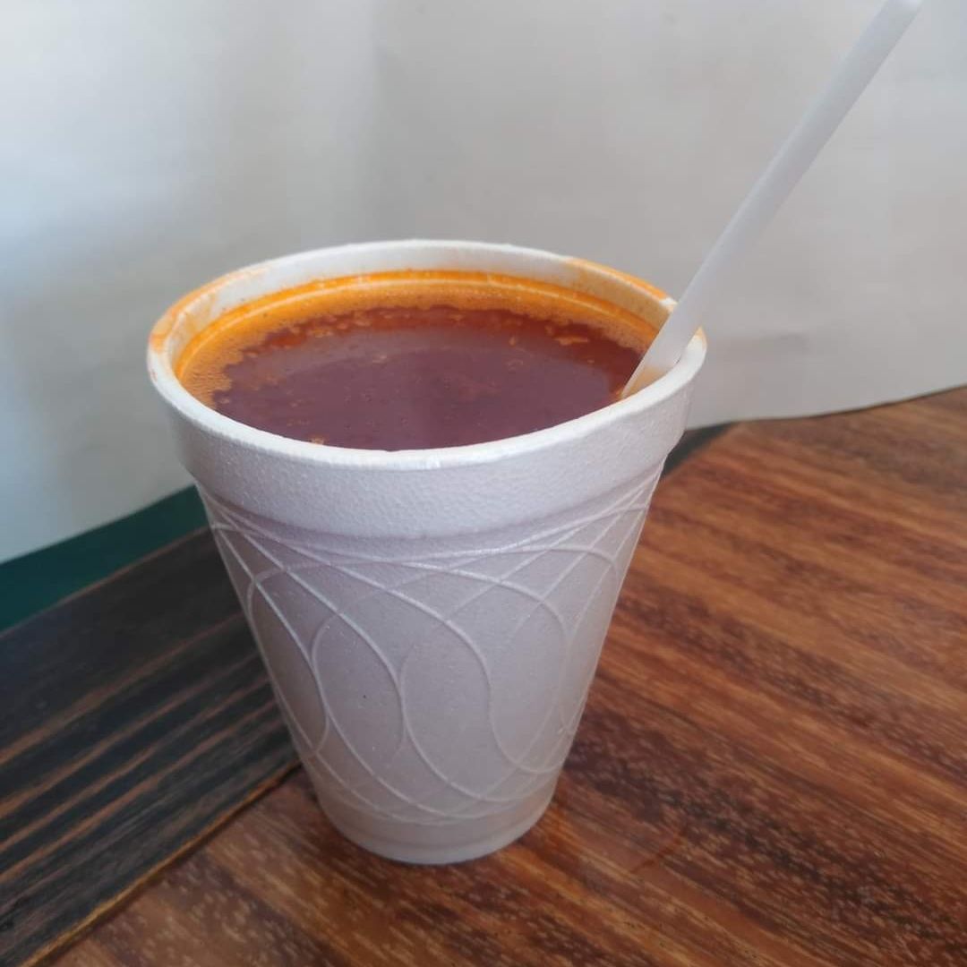 1/2 litro agua fresca Jamaica natural, taco de Birria 1, consomé chico 1, taco dorado de birria.